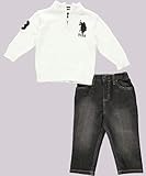 Brand : U.S. Polo Assn.Give his fall wardrobe a stylish update with this 2-piece set from U.S. Polo Assn. Made of soft cotton, the sweater has a half-zipper with metal logo pull tab, ribbed trim, and logo embroidery on the chest. A "3" applique adorns the wearer's right sleeve. The 5-pocket jeans feature an elastic waistband, faded accents, contrast stitching, and embroidery on the patch back pockets. Both Pieces 100% Cotton Machine Wash Cold Made in Bangladesh
